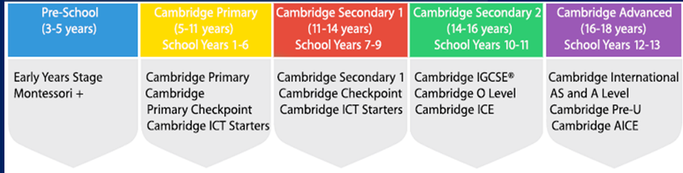 | 16+ | Year 11 | IGCSEs in: English Mathematics Options from: • Additional Mathematics • Biology • Chemistry • Physics • Combined Science • Global Perspectives • ICT/Computer Science • Business Studies • Economics • Accounting • Chinese as a Foreign Language IELTS |